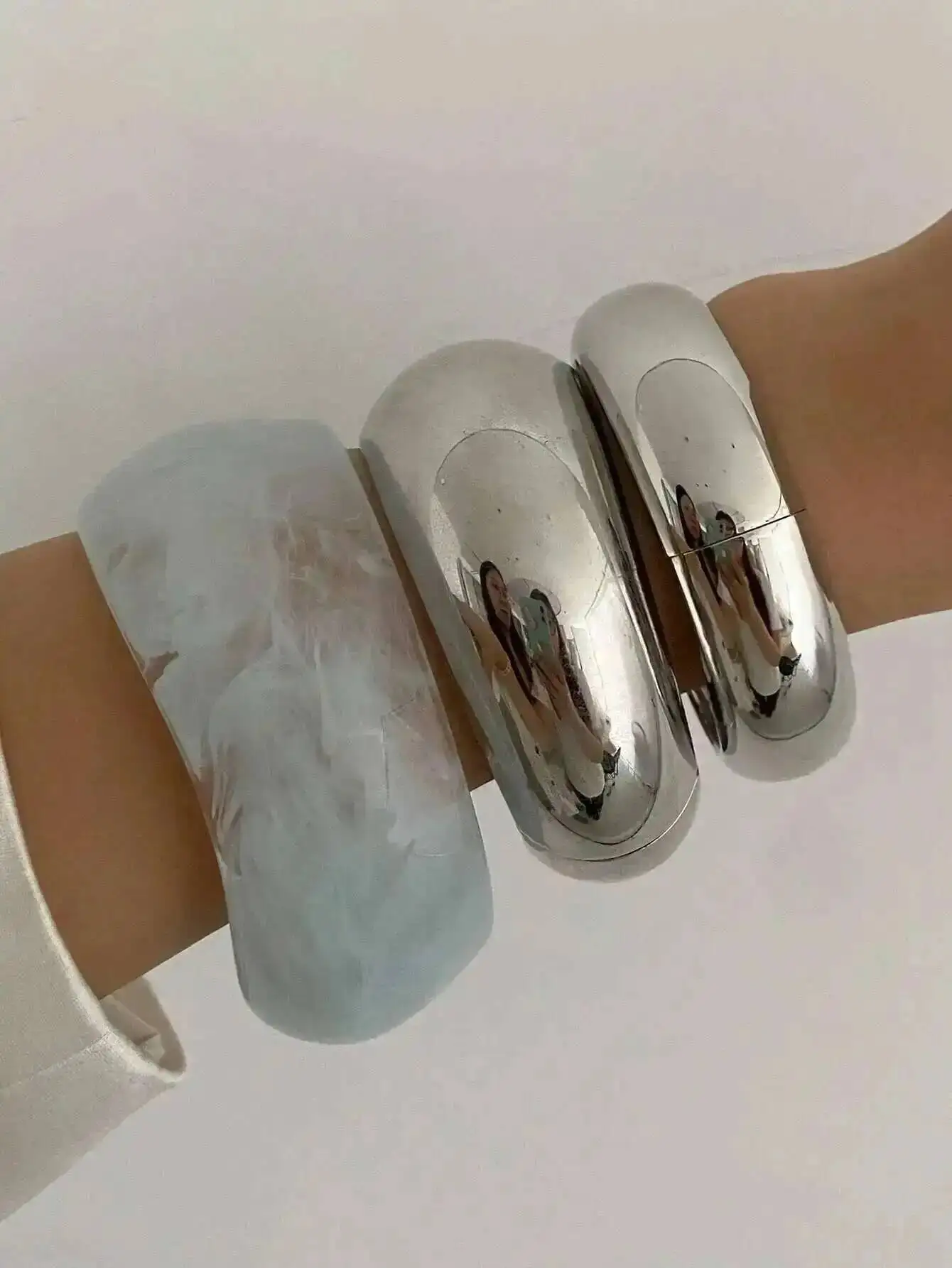 KunJoe – Bracelet large et épais en résine acrylique bleue pour femmes, Punk brillant, cercle géométrique, métal, ouvert, printemps, Y2k